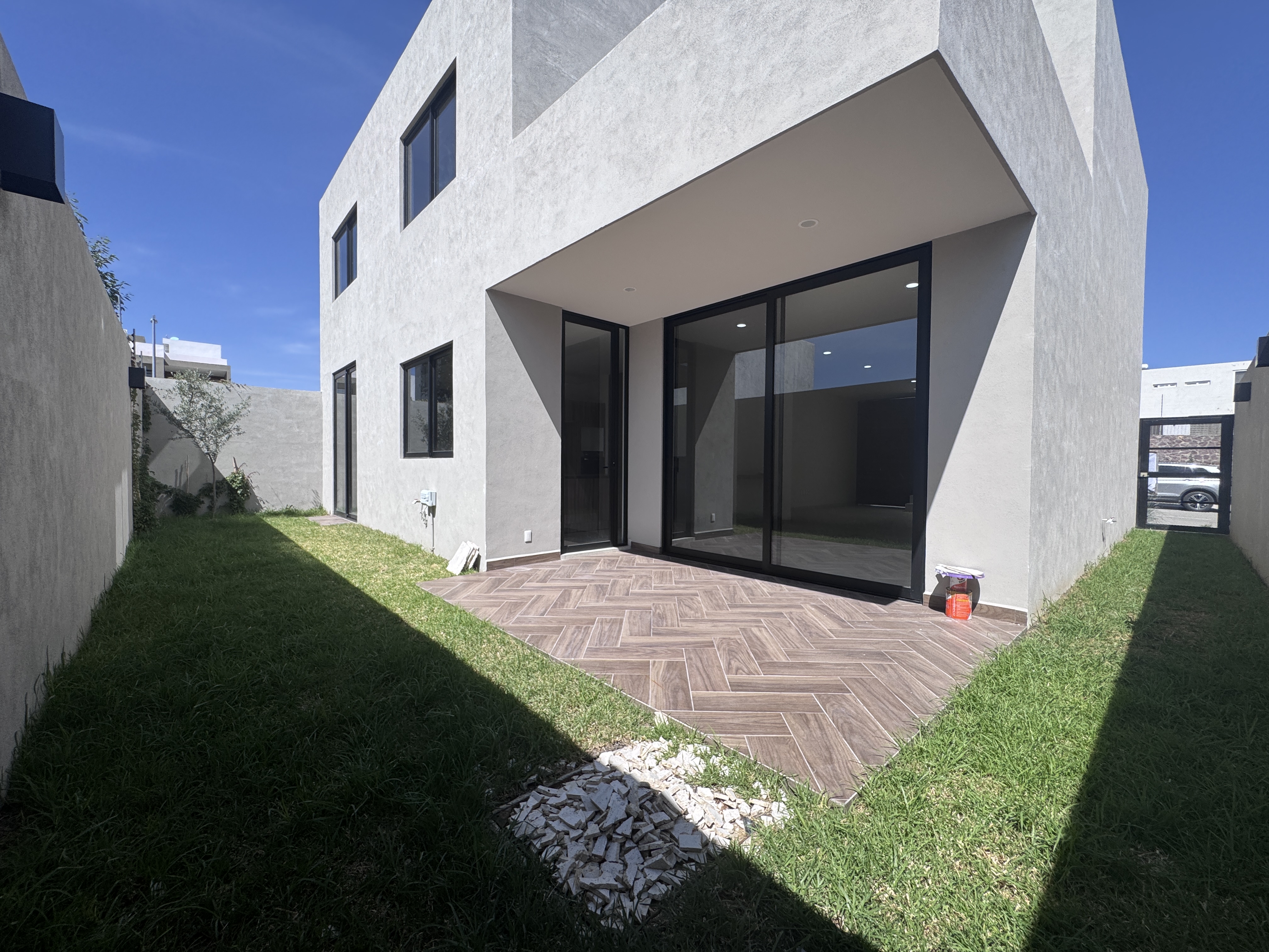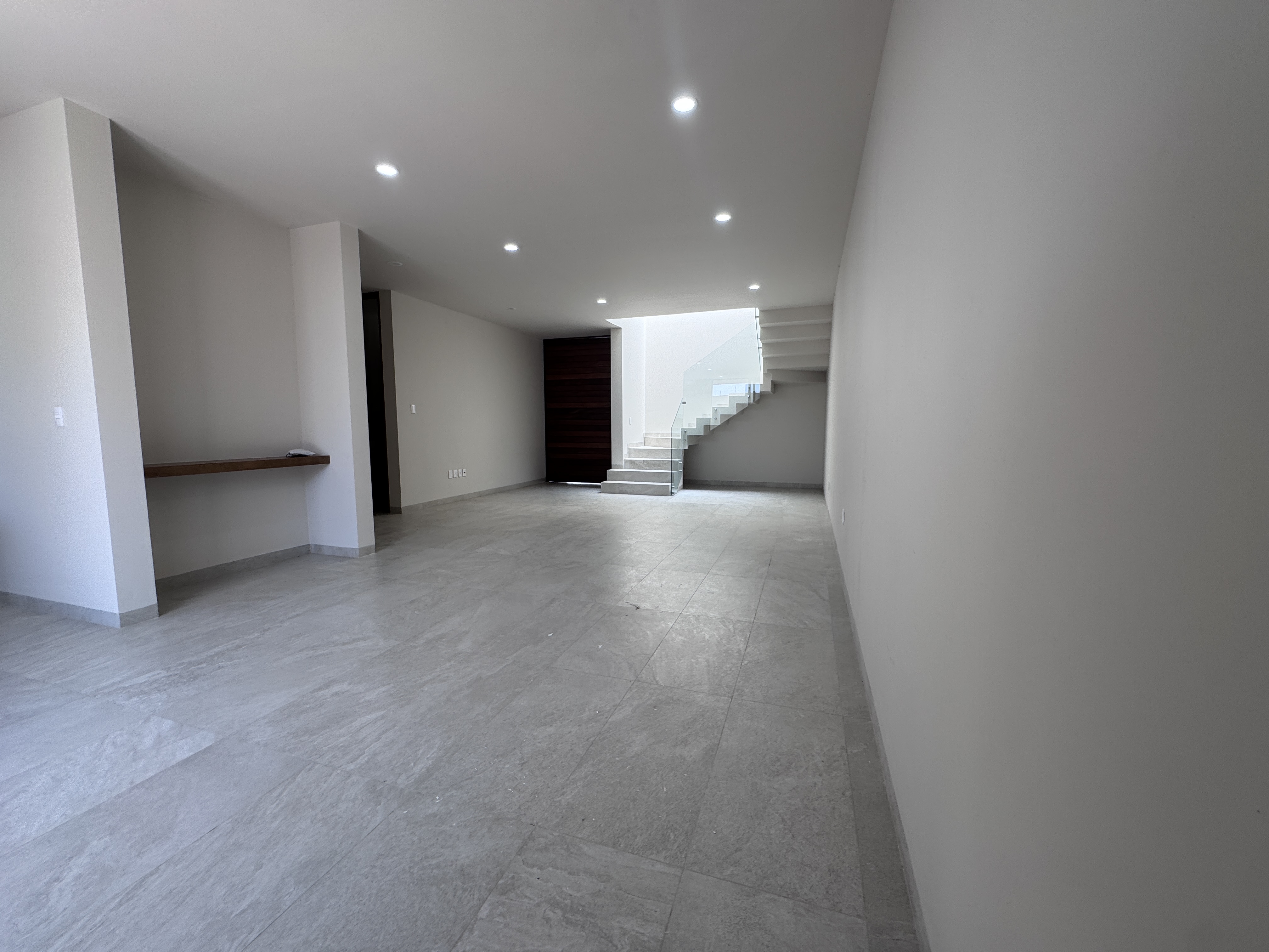 Hermosa Residencia Totalmente Nueva en Lomas del Molino Estrena hermosa residencia en Lomas del Molino, Recámara principal en planta baja. Se desarrolla el proyecto arquitectónico en 2 plantas, fachada moderna con acabados de aplanados en mezcla con pintura, muro central de tabique aparente como acabado final, puerta de acceso en duela de madera, lugar para 2 autos, el estacionamiento con piso de cantera, tiene altura piso techo 2.90 mts, PLANTA BAJA Vestíbulo de acceso, con 1⁄2 baño (toilet) para visitas, espacio para cantina o escritorio, sala. comedor con ventanales de piso a techo, piso de cerámica, closet visitas, recámara principal con vestidor y baño, canceles de cristal templado. Amplia cocina integral cubiertas de granito, 2 barras de trabajo con cubierta de granito y zona de preparación igual con cubierta de granito, parrilla y campana de acero inoxidable, con alacena, acceso a jardín en “L”, muro con arbotante y terraza comunicada desde sala. PLANTA ALTA Cubo de iluminación, en escalera forjada en concreto, barandal y accesorios de acero inoxidable con cristal templado. Amplio family room con gran iluminación. Recámaras secundarias con generosa área íntima, closet y baño completo, regadera con cancel con vidrio templado. Cuarto de servicio, cuenta con baño completo. - Toda la casa cuenta con canceleria de aluminio anodizado de 3” y cristal de 6mm - Toda la carpintería en madera de parota - Se entrega con iluminación leds en toda la casa - Preparación para aire acondicionado en todas las recamaras - Hidroneumático - Orientación Norte Sur - Tanque de gas de 300 lts - Aljibe lts - Cuota mantenimiento mensual $2,312.00 Ubicación: Zona Norte Lomas del Molino colinda con El Molino Residencial y Club de Golf. - A 5 minutos del libramiento y a 8 de Plaza Mayor la mejor zona de León Gto - Salida inmediata a Lagos de Moreno - A 35 minutos del Aeropuerto del Bajio - Estatus legal: Escrituras, todo pagado - Casa nueva a estrenar .